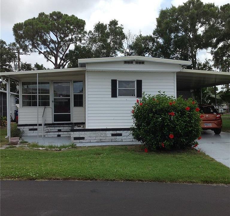 NEW PRICE. Winter Retreat or year round living. Single wide with an add on. Glass windows in Family Room. PET Friendly Section. 55+ active community. Many updates including: windows double pane, Heat and A/C unit, Refrigerator, Hi Boy toliet, washer, dryer. Unit comes turn key furnished just bring your clothes and move in. Screened in patio with tile flooring. Washer, Dryer in utility shed. Wood and carpet flooring. NO Lot Rent. Low maintenance fee of $420/Q includes: water, sewer, trash, lawn cutting, heated pool, club house w/manager, and shuffleboard. Property being sold AS IS with right to inspect. Won't last long at this price.