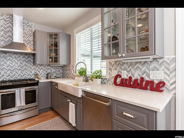 Spacious Townhome located just minutes from shops, American Fork Canyon and Lone Peak High School. Recently remodeled gourmet kitchen with quartz counter tops, stain less appliances and new grey cabinetry which opens to large great room. Home features main floor living including a master suite with walk in closet and master bath with granite. Upstairs there are 3 more bedrooms as well. Basement is great for entertaining with large family room, theater room and 1 more bedroom. Attached garage and back patio. All yards are maintained by the HOA, which also provide exterior insurance and Comcast cable. This property is a fantastic value for the 3596 sq. footage, main floor living floorplan and level of updating it has undergone. Call for a showing today.