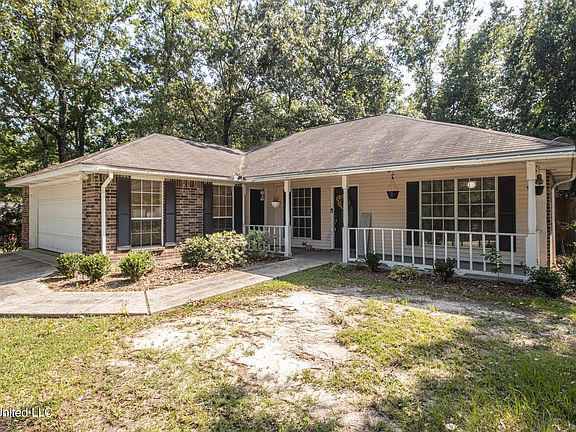 Conveniently located 3 br, 2 ba home with double garage situated on a corner lot at the entrance of Diamondhead. The front porch is the perfect spot to enjoy your morning coffee. As you enter the home, you will be amazed by the spacious amount of space in your living area. The french doors at the rear of the living room takes you right onto your back patio in your fully fenced back yard. Perfect for your summer bbq's and get togethers. Primary bedroom with large closet & primary bath with his & hers vanity is tucked behind your galley kitchen. 2 bedrooms with guest bath in between is on the other side of primary bedroom giving this home a true split plan feel & privacy needed.