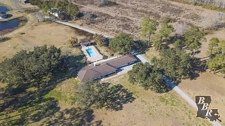 Live in the great outdoors!! This home sits on 75 acres of prime fishing, duck, and deer hunting. This rambler has been updated with a gorgeous kitchen, master bed and bath. Completley unique dining/study with beautiful wood and glass accents. Home has a swimming pool, bath house, a pond to dog train, kennels, a 30x60 metal workshop, 22x40 screened in area to house kennels, chickens, quails,or any other animals you would like to house. A pergola overlooks your own pond. Follow the trail the back of the property and you find deer hunting stands, beauitful hard woods, and open fields for hunting. Then, a trenasse that connects to your own marsh and duck pond. You also have quick access to the intercoastal canal from the back of the property. This home is minutes away from freshwater fishing.