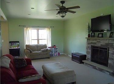 3 year old home on .9 acre. Beautiful 24x14 great room with a stone gas fireplace. Pre-wired for your surround sound. All 2x6 construction. 6 foot heated jacuzzi tub in the master bathroom. Fenced-in level yard. The basement could easily be finished. The insulation is already there.