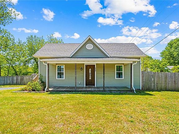 Say hello to this charming historic home in the heart of Ramseur w/ rocking chair front porch. Front entrance & side entrance w/ large deck. Roof, HVAC & hot water heater approx 5 years old. 1300 + sq ft featuring 3bdrms, 2 bath w/ split floorplan. Kitchen features granite, island w/ storage & eat at bar area. Appliances to remain. 2 double closets by kitchen that could serve as a pantry or whatever you desire. Separate spacious laundry room. Primary is a great layout w/ closet between bedroom & large bathroom. Large fenced in backyard & building to convey.