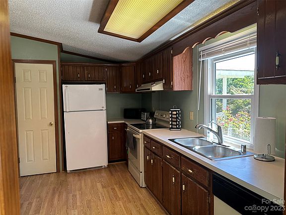 Great home in a fantastic South Asheville location. Home has a newer HVAC (2 years old), windows are vinyl replacement (5 yrs old), skylights replaced 3 years ago, new flooring throughout 5 years ago. Home offers a split bedroom plan with 2 family rooms, breakfast room and dining room, enclosed 4 seasons sunroom, meticulously maintained exterior and you will love all the plants that will come up each year. Yard is fenced so offers privacy. Covered front porch. There is plenty of room for everyone here. Pad in side yard previously held a hot tub. Electric is still in place. All appliances including washer and dryer included. Security system/cameras will not convey. Garage door remote only opens the garage (does not function to shut it) but there is a button at the doorway to open/close garage door. No keys for front door. Please note there is a pier under the home that is leaning. This is an as is sale so please consider that when presenting an offer.