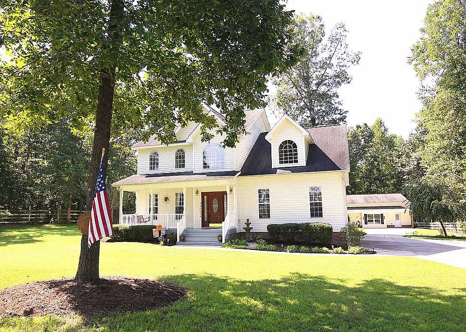 Stunning home in the quiet country setting you have been waiting for! Fresh paint in the living room. Hardwoods throughout the main level. 1st floor master with walk in closet & attached en suite w/ whirlpool garden tub. Open kitchen with breakfast area and solid surface counter tops. Detached guest house offers its own kitchen, full bathroom, and two additional bonus rooms. Completely fenced in with gate access for additional privacy. Screened porch, fenced yard, and situated on over 1 acre!