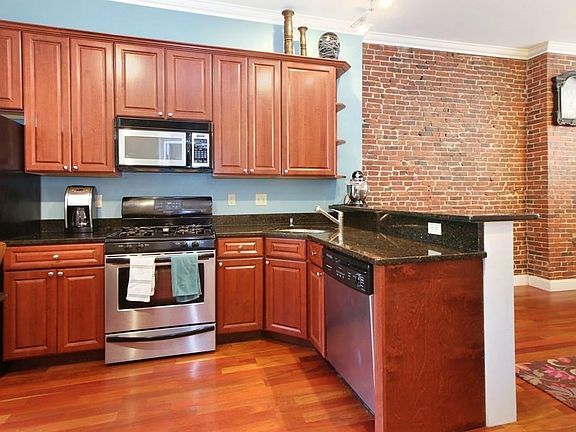 Lovely Brownstone duplex located in the heart of South Boston. Steps from East Broadway's restaurants, shops, all major bus connections to downtown Boston, Copley Square, South Boston's Waterfront, this home is city living at its best! Stunning kitchen offers gas cooking, granite counter tops and breakfast bar. Separate living room with gas fireplace, bay windows, and exposed brick, makes for an inviting entertaining area. A large master bedroom with private master bath benefits from tremendous natural light. Step out to your own spacious private oasis deck and private patio (both only 1.5 years old), enclosed outdoor storage unit, and enjoy a huge common area backyard! Washer/dryer in unit. Both full baths offer jacuzzi tubs and the unit has cherry hardwood floors throughout, as well as ample storage. Central A/C. Building is pet friendly.