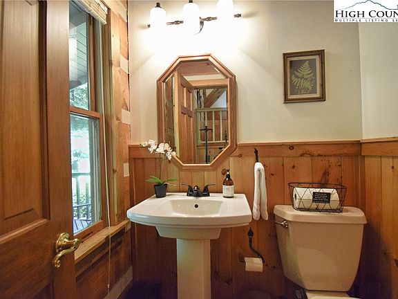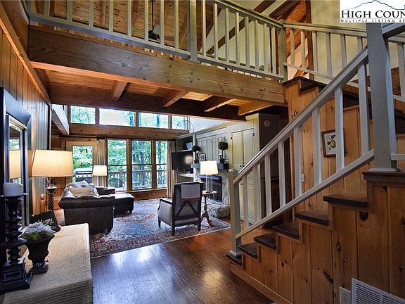 Charming Blowing Rock log cabin with vaulted ceilings. Hardwood floors throughout, 2 bedrooms, 2.1 baths with additional sleeping loft. Septic permit for 3 bedrooms, enjoy relaxing after a long day in the glorious hot tub with a newly constructed structurally supportive deck. Granite countertops, stainless steel appliances, gas log fireplace, lovely built-in shelves, and bar. Subject to the vacation rental act, currently rented July 13th-16th and July 20th-23rd. The unfinished basement is plumbed. Ioncon PLLC designed a deck for the weight of the hot tub please see the attached deck plans. At the time of purchase, the sellers had Pioneer Log Homes stain, seal, caulk, and repair wood. The seller has the home rented in VRBO and Air B&B records are available to the buyer's agent upon request. The septic tank was just pumped and serviced by Triple T. Pumping see attached invoice. Professional measurements are attached. New gravel brought into driveway. Seller will consider selling furnished with the right offer.