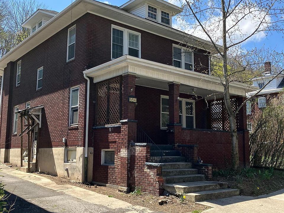 SOLID BRICK HOME AWAITING SOMEONE TO MAKE IT SHINE AGAIN - REPLACEMENT WINDOWS - 200 AMP SERVICE PANEL -DETACHED 2 CAR GARAGE - GAS FIREPLACE IN THE LIVING ROOM - A DEN/OFFICE AREA IS LOCATED ON THE MAIN LEVEL AND HAS BUILT IN BOOKCASES FRENCH DOORS -POCKET DOORS FROM THE LIVING ROOM TO THE FORMAL DINING ROOM- OAK FLOORS NEED REFINISHED BUT COULD BE BEAUTIFUL - FULL WALK-UP ATTIC WHICH COULD BE FINISHED FOR ADDITONAL LIVING SPACE-LARGE COVERED FRONT AND REAR PORCHES- PARTIALLY FENCED YARD-FULL BASEMENT JUST TO NAME A FEW OF THE GREAT FEATURES- THIS HOME WAS BUILT WELL AND IS CLOSE TO I-68 EAST AND WEST, CLOSE TO A SCHOOL AND MEDICAL FACILITIES-CONVENIENCE STORES AND SHOPPING -RESTAURANT - DO NOT MISS THIS ONE! BEING SOLD AS IS TO SETTLE AN ESTATE. THE DRIVEWAY IS SHARED ACCESS TO THE GARAGE
