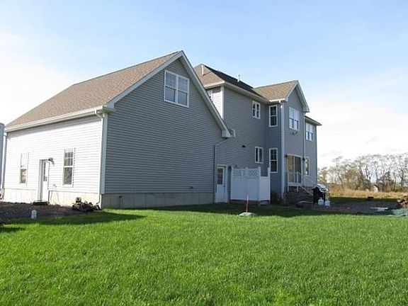 Open floor plan in this 3,368 SF custom designed 4 bedroom, 3.5 bath home, offering a spectacular designer kitchen, open living and dining areas, hardwood floors, fireplace, surround sound, home office, laundry room, master suite, oversized 2 stall garage with the potential for living space above, high efficiency heating & hot water, central air, full basement roughed in for additional bathroom, maintenance free exterior, paved basketball & play area, set atop a picturesque 5 acres with stunning southerly views!