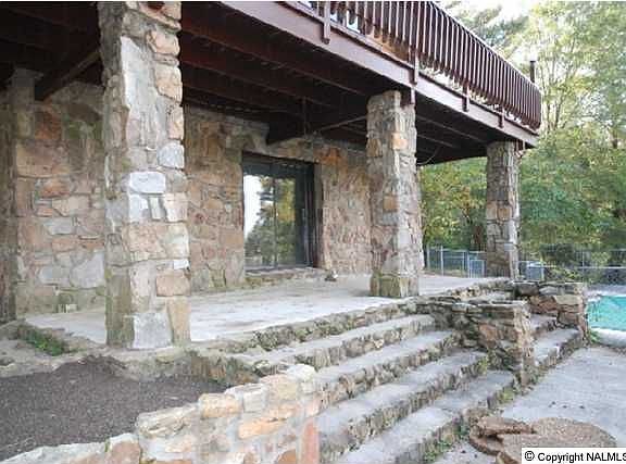 For more information, contact Roy Claytor at (256) 656-2921. Enjoy the fabulous wooded views from the large porches of this unique three level stone and cedar home! Secluded on 7 acres this home offers 4 bedrooms, 3 full baths, a recreation room on the first floor, two gas fireplaces, storage shed and gunite inground pool! Over $30,000 spent to update and make this a great coutry home 20 minutes from the heart of Redstone. Pool is AS-IS.