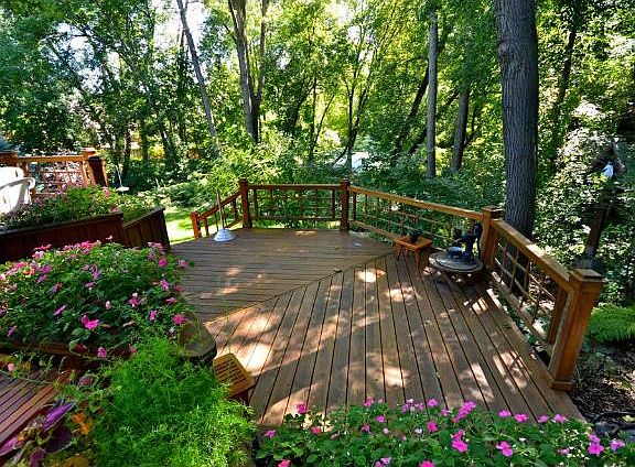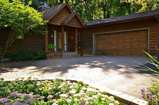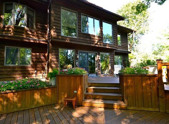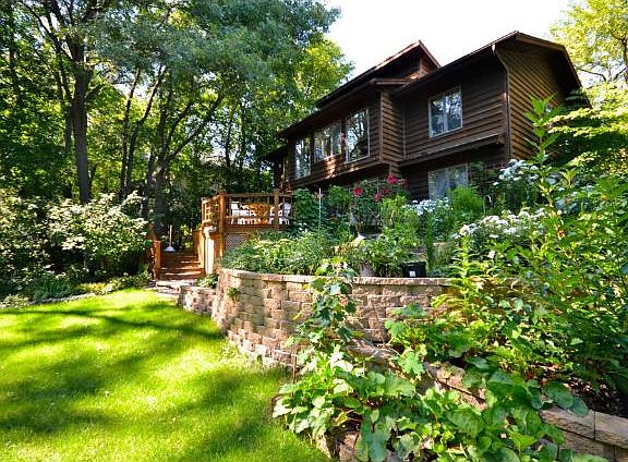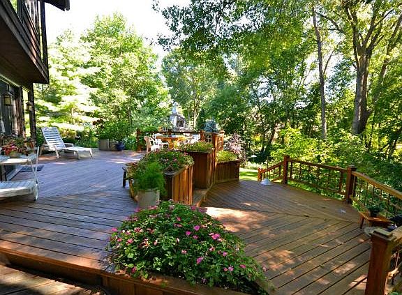 Custom built w-out rambler nestled into a prvt natural setting of woods/colorful grdns & 2 tier deck! Amazing floor to ceiling south facing wndws offer spectacular views, vaulted liv rm w/FP, inviting sun rm, huge shared kit/din, LL Fam Rm! Walk to lake!