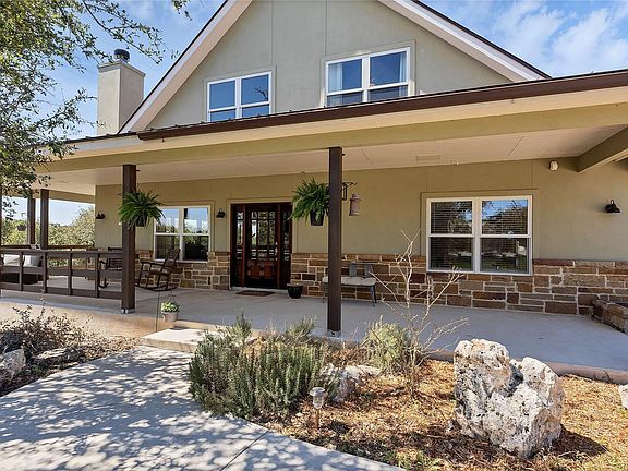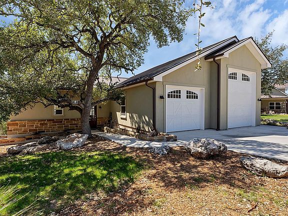 This beautiful 2.19 acre, Mystic Shores property has two homes and an oversized, RV garage! The main home is 3,578 square feet. It sits back from the road, offering privacy and fantastic hill country views. It comes with 5 bedrooms, 4 bathrooms, a powder bath, bonus room, media room, large kitchen, dining area, walk-in pantry, laundry room, walk-around porch and an upstairs loft that looks down on a spacious great room and cozy fireplace. One of the bedrooms and bathrooms resides within an attached guest suite that is perfect for guests or kids home from college! A 2-car garage is attached to this home. The 658 square foot casita has an additional one-car garage and an RV garage! It has a main living/kitchen area, a large bedroom, one bathroom, covered porch and laundry (located inside the garage). The oak-studded, outdoor area features a cedar gazebo, outdoor fireplace, and a small greenhouse. This is a well-designed property, perfect for three generations of family!