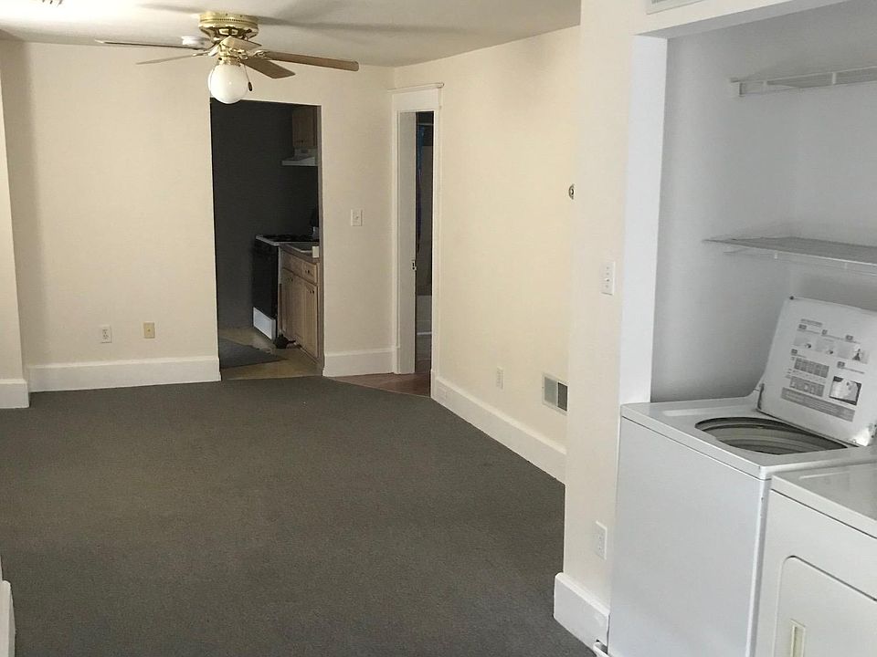 Nice modern apartment; One (1) bedroom, One (1) smaller room for office space; private entrance in front and rear; two off street parking spaces; kitchen includes gas stove and refrigerator; ceiling fans; gas heat, A/C window units can be provided; nice yard shared with tenant below. Tenant pays for gas, electric and water/sewer. Great location Within a few blocks from downtown Carlisle; within a few miles from Interstate 81 and PA Turnpike. Owner pays for trash only