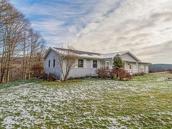 This charming Ranch offers the combination of several upgrades met with a peaceful landscape. Natural light pours into this exquisite home that features an open concept living space that overlooks 4.73 acres. Upgrades to this home include Crestwood heated above ground pool, a new pellet stove, a new gas fireplace installation, a replacement well pump, replacement garage doors and openers on the oversized garage and more! With a wrap around deck, hardwood floors and a basement space ready to be made your own, any homeowner will find enjoyment here. Call for your appointment today!