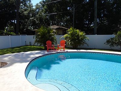 Updated, freshly painted inside & out Concrete with Brick house for sale in Palm Bay. Gorgeous 4 bed 2 bath plus a den.. Pool Home near Port Malabar Elementary with easy access to 95, shopping & the Grapefruit biking trail. Updated, Upgraded huge Pool Home close to Malabar Elementary School & Grapfruit biking trail. 4 Bed 2 Bath, 2 car garage. Extra large windows in the kitchen provide a view to the pool as well as being a pass thru for food and drinks There are french doors in the dining and Master bedroom. White PVC fence surrounding the property, quite street, Cabana bath. Granite counters, polished title 20''tile floors. Floors, kitchen upgrades and master bath all replaced in last 2 years. Orange tree, palms and tropical plants abound on this delightful pool home. Centrally located but feels like country. Yard fully fenced. Easy access to 95 and shopping, Concrete block home with brick. The perfect place to call home. NO HOA.