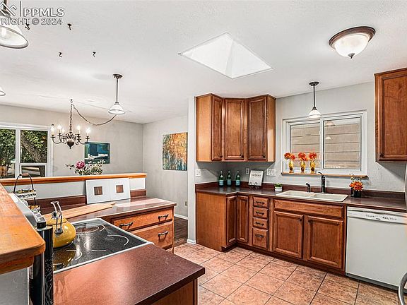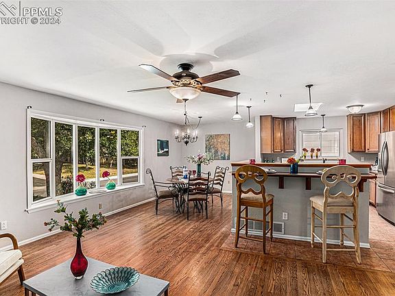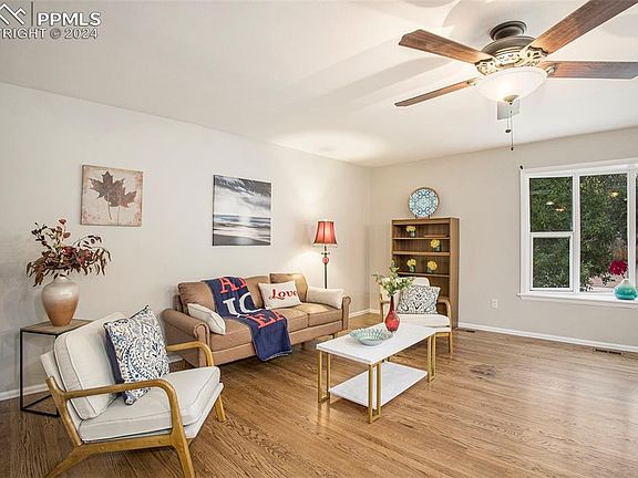 WOW! This gorgeous home shows PRIDE of homeownership with the same owner for over 51 years who lovingly maintained this home! Newer earth-toned stucco, and gorgeous ivy under a mature shade tree grabs attention with charming curbside appeal. Walking in the front door with beautiful leaded glass, you have a wide landing with direct access to the back covered deck via French glass doors. Also, plenty of light with one of several skylights in the home. Up the wood stairs you will find stunning ¾” hardwood floors throughout the ENTIRE upper level. The floorplan is open with a large bay window and NO POPCORN ceilings. The open kitchen features plenty of counter workspace, bar seating, skylight, pendant lighting, stainless steel appliances, beautiful cabinets with dovetail construction, including a pantry, window above the kitchen sink and beautiful earth-toned tile flooring. Three bedrooms and two baths are conveniently located on the upper level. All bedroom feature ¾” hardwood floors. The master retreat includes double closets and an attached bath. The lower level includes a massive garden-level family room with a cozy brick fireplace, two additional oversized bedrooms, massive laundry space with built-in cabinets, and 3rd full bathroom. One of the bedrooms is also conveniently attached to the bathroom. In the backyard you will enjoy the covered deck with lights and even a ceiling fan. The backyard is massive and fully fenced. This home also includes newer vinyl windows, gutter covers, AIR CONDITIONING, plenty of storage, brand new interior paint, brand new carpet, fully insulated double steel garage door, with workbench and built-in shelving. A short walk to Widefield community park, a 50 acre site which hosts a playground, basketball court, baseball backstop, an 18-hole disc golf course and memorial sitting area. Walking distance to Webster Elementary and Mesa Ridge High School. Minutes to Fort Carson, Dutch Brothers, and restaurants. You will LOVE living here!