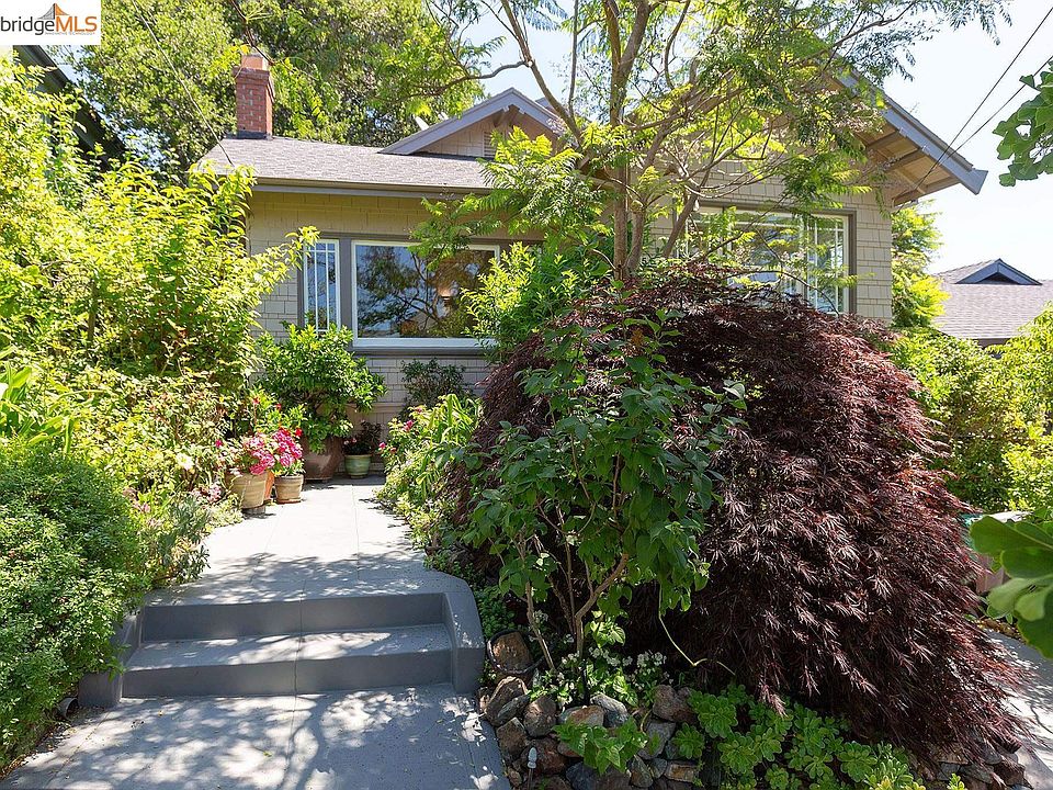 Transparently Priced. Welcome to 554 Rosal Avenue, a charming Bungalow in Lakeshore/Grand Lake neighborhood. Go up the enchanting walkway, surrounded by blooming flowers and mature trees. An enclosed sun porch opens to a spacious living room leading to a formal dining and an eat-in kitchen with a breakfast nook. French doors from the kitchen and one bedroom opens to a sunny large deck with views of Oakland Hills. One bedroom and one bathroom are on the main level. Upstairs is the primary bedroom suite and ensuite bathroom with verdant views of the hills. Kitchen comes with a new stove, double Liebherr refrigerators, and Miele dishwasher. Backyard feels like a private oasis with mature tree ferns. House has air conditioning, perfect during hot summer months. One car garage and driveway.