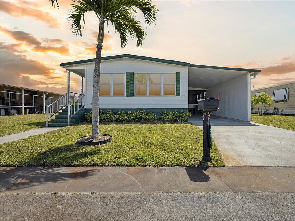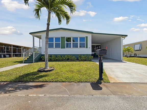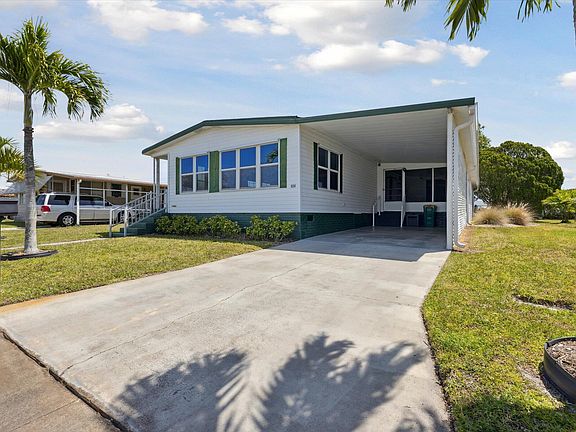 Located in Hollywood Estates, one of the best affordable 55+ communities, this double-wide, manufactured home has over 1,300 SF of living space! No lease fees - you own the home & land! Just steps from the community pool & clubhouse, this home features 2 bedrooms, 2 baths, a spacious open living/dining room and Florida room with a pool table included, plus a big screened-in porch, and a 11'x17' workshop/golf cart garage! Very clean home with updated beautiful, wood-look laminate floors. Lots of windows make this a bright and cheery home! Primary bedroom is large enough for a king-size bedroom furniture suite. Newer vinyl siding, newer windows in the front, storm shutters and generator hookup. Includes Washer & Dryer. Low HOA fees. Only 15 minutes to the Beach! Close to downtown Melbourne, shopping, dining and medical facilities.