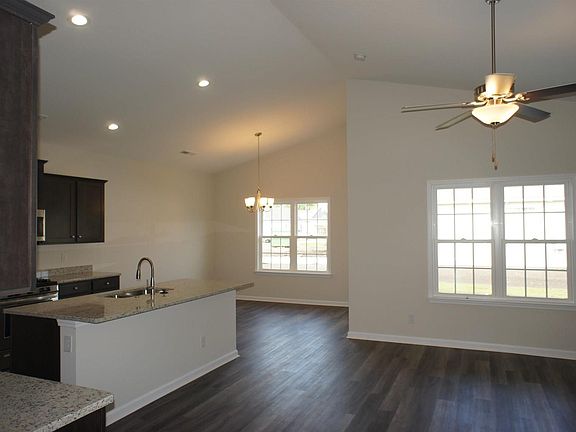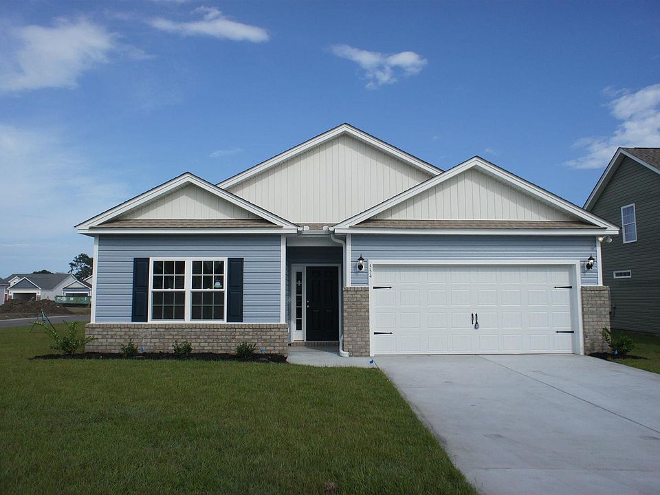 Beautiful Topsail floor plan under construction in Ocean Palms. This terrific open floor plan, 3 bedroom, 2 full bath home will have upgraded wood-look LVP flooring under the soaring vaulted ceiling in the family room, kitchen and dining area and in bedrooms. Stainless appliances, staggered height Shaker-style dark grey stained cabinetry, Dallas White granite counters and a kitchen island, and added cabinet and counter space combine to give the kitchen the wow factor you're looking for. A French door in the dining area leads to a large covered porch with a patio. The spacious owner's suite features a tray ceiling, long vanity with granite counters, an oversized walk-in shower, plenty of storage in the cabinetry plus two huge walk-in closets. Two additional bedrooms and a bath are tucked off on their own private hallway, for privacy. All of the homes in Ocean Palms come standard with the luxury of Natural Gas (tankless water heater, gas heat, and gas range). The garage is completely trimmed and painted. Ocean Palms is conveniently located near shopping, restaurants, schools and world class medical offices and hospitals, and a short golf cart ride to Surfside Beach's gorgeous beach and the Atlantic Ocean. Other floor plans and inventory homes may be available. Community Pool and Cabana are now open! Photos are of a completed, similar home and may have different features.