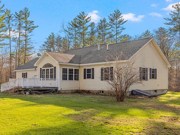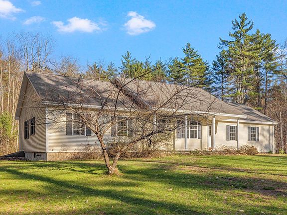 Dreaming of secluded privacy on 5 acres but only minutes to Rt 93 for an easy commute? This stunning 3 bedroom, 2 bath, one level home features five wooded acres with beautiful landscaping and gardens. Relax or garden in a tranquil country setting. Open kitchen/dining/family room with soaring ceilings and a gas fireplace, perfect for entertaining. Unwind in your light and bright sunroom that opens onto an expansive composite deck, ideal for enjoying your backyard oasis in the warm summer months. Primary suite with a private bath and walk-in closet. Your farmer's porch welcomes you home and gives you additional outdoor living space. Attached two car garage with an overhead storage room. Separate storage shed for all your lawn equipment. Full basement ready for expanding your living area. Open House Friday, 4/28 4-6 Saturday, 4/29 11-1.
