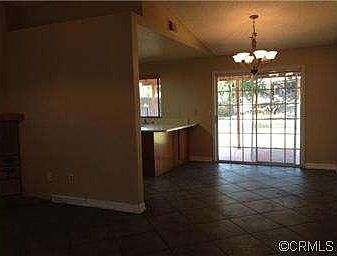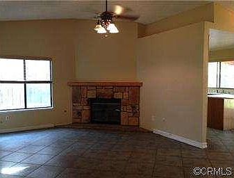 Great 3 bedroom 2 bath on a lovely cul-de-sac in Colton. This home features High Vaulted ceilings through-out, large rock fireplace, open floor plan, tiled floor, designer style closets in master bedroom, both showers are beautifully tiled. This home also features an office that can be used as an optional 4th bedroom, Landlord is providing Ikea free standing closet for that room. This home has a covered patio and a very large backyard, perfect for entertaining.sq. ft. not taped