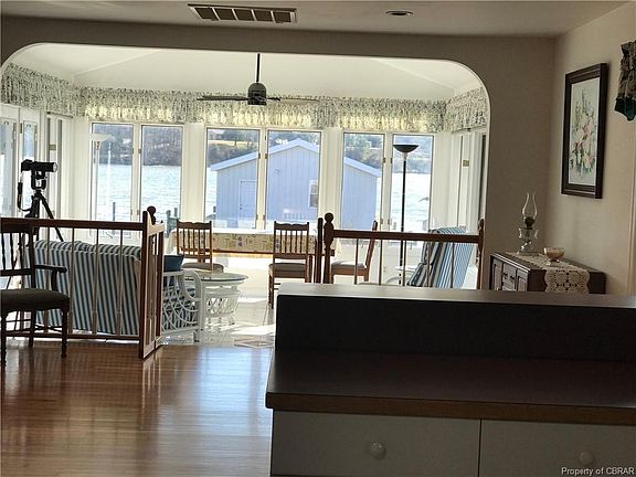 NEW OFFERING on the PIANKATANK RIVER! Charming Home with Large Boathouse and Dock with deep water. Gorgeous Southern exposure captures both Sunrises and Sunsets up and down the River. Picture perfect painting that changes colors daily. Walls of glass in the family room grace the waterside for maximum enjoyment. Hardwood flooring gleams throughout the well cared for home. Features Two large Master Suites and a smaller room and hall bath. Recent upgrades: 2015 and '05 Two Heat pumps with gas back up, 2013 New kitchen floor, hot water heater, attic insulation, shutters and garage door., 2010 new insulation, 2007 new roof. The landscaped circular driveway and stone walkway makes a lovely first impression. Elevated land- Community offers 3 recreational areas with piers, ramps, play areas, and beaches and is a Fun filled golf cart community. Just a couple miles from the Piankatank Golf course. Selling As Is for this less than assessed price. Yearly dues are voluntary.