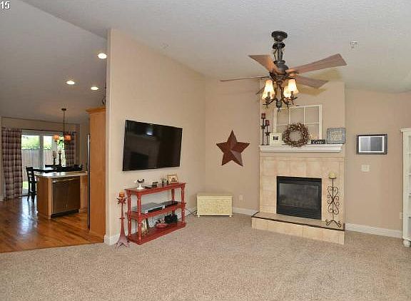 Terrific 3 bedroom, 2 bath starter home. Light & bright with a nice open floor plan; spacious vaulted ceilings in the living/kitchen area, hardwood floors in kitchen & entry and new carpet thru-out. Freshly painted exterior. Private backyard w/ large covered patio. Room for RV or trailer parking. This cozy & comfortable home has been well cared for & is truly move-in ready.