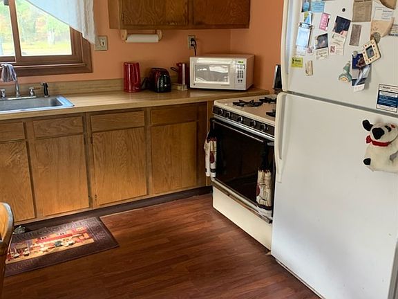 This home is in a great area, connects to lots of Federal land in the back, walk out to go hunting. Three bedrooms, large inclosed front porch, internet, beautiful yard fenced in area in back for dogs, feels private, but still has neighbors around. Home and garage has newer metal roof, so no maintaince needed for the roofs. Only three miles to Mio. And is walking distance to the AuSable River