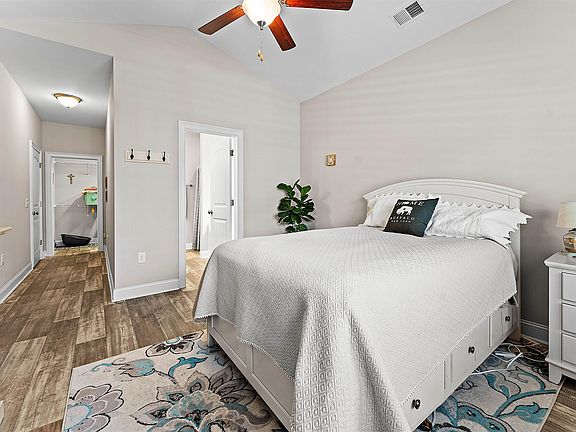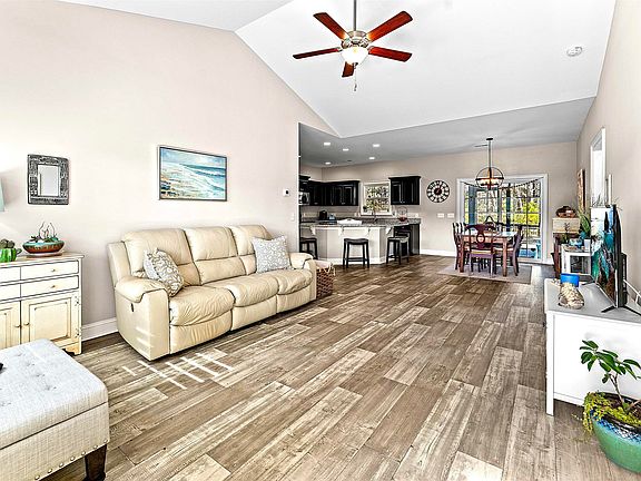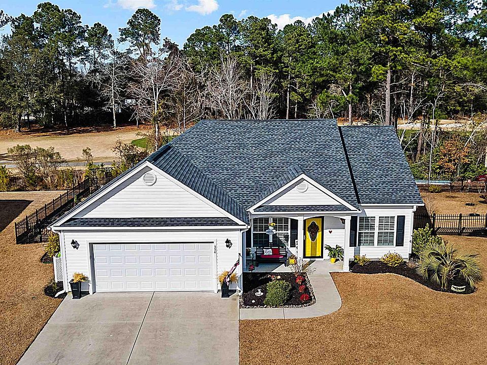 Elegant and pristine, this property is located on the golf course in the desirable development of Shaftesbury Glen. The epitome of move-in ready, the home was built only 3 years ago and has been lightly lived in. The open plan layout is inviting and bright. Greeted by the large living space when you enter through the front door, the space leads you to the dining area with sliding glass doors that showcase the beautiful backyard and golf course! You will find the kitchen surprisingly spacious, featuring stainless steel appliances, granite countertops, a huge island, and a breakfast seating area. The serene screened-in back porch offers ample space to enjoy the privacy of the attractively fenced-in backyard that looks like an oasis in the summer! The outdoor space is charmingly landscaped, with irrigation and a fence with a double gate entry to the backyard on the side of the home. Inside, you'll love the split plan layout with a completely private suite on one side of the living space. The luxury bathroom in this suite includes a soaking tub, walk-in shower, and double vanity. The home has luxury vinyl plank flooring throughout and plantation shutters on all the windows. On the opposite side of the home, you'll find two bedrooms and a full bathroom. Seamless flow between the living areas in this Pecan floorplan, built by Creekside Homes, creates space for easy living as well as entertaining. As an added bonus, the HOA includes golf green fees, so you can enjoy free golf! Situated on a prime golf course lot in the development, you’ll love the backyard privacy and lush green scenery. Lovingly landscaped by the owner, the yard is ready for you to enjoy the upcoming growing season. Some of the pictures included in the listing were taken in the summer months, showcasing the yard at its best. For additional storage, there is a floored attic space conveniently accessible from the 2-car garage. The community also offers desirable owner facilities, including a pool, which adds to the incredible value of this property. The house is clean and ready for you to move in. Call today to schedule a tour!
