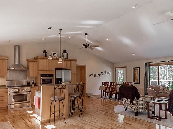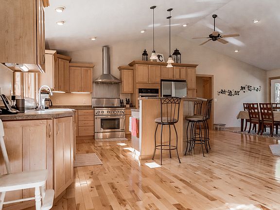Nice neighborhood 5 minutes from town. The house was built with the high quality materials not typical for most. Kitchen is large and very functional. All appliances are Jenn air. We enjoy cooking so the stove is a gas 36" 6 burner that was $6,000 at time of purchase. Large master bath, walk-in shower with 6 shower heads with on/off valves that control them. Has the capacity to run all 6 at once. Toilet and very large soaking tub face a built in TV. There are 2 family rooms. One on the main floor that is part of the kitchen/dining area and the other is pretty large with an office in one corner. Two large storage rooms plus the mechanical room. Extra deep garage at 30' with running hot and cold water two bay sink and large stainless counter for cleaning fish or game or any other projects you want to keep out of the house. Newer hot tub on patio is included. Lots and lots of other small features that set the house apart from what you may normally see. Arched maple doors and cabinets, solid birch floors, propane tank is owned not rented, grill on deck is hard piped so no refilling 20lb tanks, french doors instead of bi-folds, his and hers storage rooms, outlets above the cabinets for decorating or lights, etc. Plenty of room to add a detached garage or shed. Whisperwood is a dead end road so there is little traffic and quite safe.