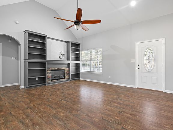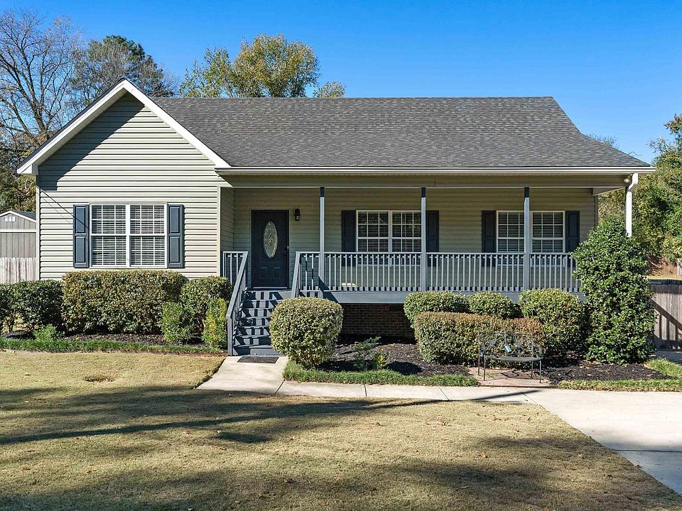 You will love how well this home has been cared for. Outside, this is a large lot and the front porch is great for sitting on nice evenings. There is also a large back covered porch, with built-in storage boxes, perfect for sitting and dining (fans installed 10/2023). And, the perfect place for a firepit. Inside, upon entering, it feels so grand with the cathedral ceiling in the great room. And, the wall of bookshelves and fireplace makes this home warm and cozy. The kitchen is open with lots of windows, granite counter tops, stove (10/2023), dishwasher (10/2023), microwave (2022), water heater (10/2023). Hardwood type flooring flows throughout the entire home and there is no carpet. Additional concrete has been poured for a wider driveway and 30'x60' RV port (water, sewer, electric)within the fence. The storage building has power/water to double as a workshop. There are too many upgrades to list here. Words alone cannot describe this amazing home. It is a must see!