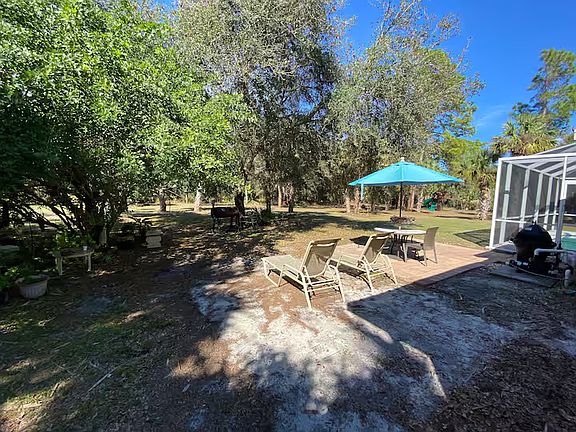 Bring your boat, RV, or park multiple vehicles! This property has a large 2+ acres beautiful backyard surrounded by 3 streets. With only one close neighbor in front of the house. Large house with 2132 Sqf, double garage, and lanai enclosed pool with heater! New AC and water heater. New heavy duty metal roof to protect your family and your personal properties in case of a hurricane. The laundry room has a washer and dryer free for you to use. The house is furnished ready for you, just bring your travel bags!