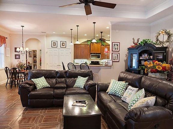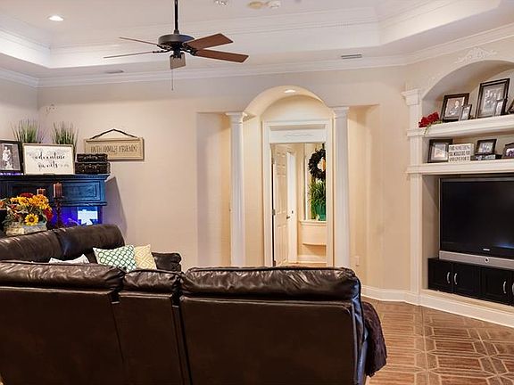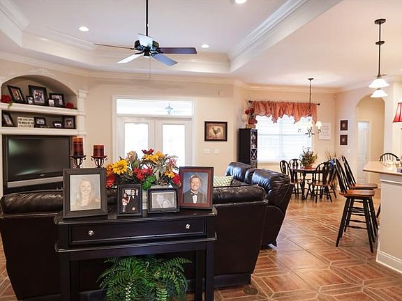 PRICE REDUCED! ONE owner HOME! From the moment you enter this Custom Built Home by Master Built construction, you will be amazed. Walk up to the front porch and be greeted with rocking chairs and brick pavers, perfect for drinking your morning cup of coffee. Home is spacious with 4 bedrooms, 3 bathrooms, OPEN concept with upgraded large tile flooring throughout, and SPLIT BEDROOM floor plan. Many upgrades went into the design of this home such as luxury crown molding with lighting underneath, tray ceilings, interior blinds in French doors, upgraded canned lighting, central vac and plantation shutters covering the windows. No detail was overlooked. FRESH, NEW paint job on exterior of the home and porch, brand new vinyl fence installed in July, and upgraded ceiling fans on porch area. Kitchen has Custom cabinets, Cambria Quartz countertops and stainless steel appliances. The chef in the home will love the double convection oven, perfect for cooking and hosting. Extra LARGE master bedroom with SOFA room offers plenty of room to relax. Master bath features a large jacuzzi tub, separate walk in shower, dual sinks and two ceiling fans to keep you cool! Additional rooms are spacious and inviting with laminate flooring in the 2nd and 3rd bedrooms and carpet in the 4th bedroom. Not only does this home have a giant living room perfect for gatherings, but also has a great room or, in this case, a movie room! Back porch has plenty of room for grilling out and entertaining! Large, fenced in backyard!