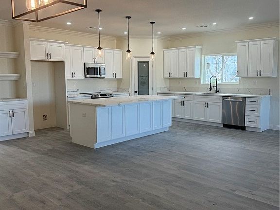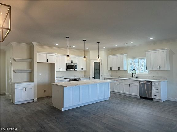 - Description: Breakfast Bar/Counter,Custom Cabinets,Island,Linoleum/Vinyl Flooring,Quartz Countertops,Stainless Steel Appliances,Walk-in Pantry