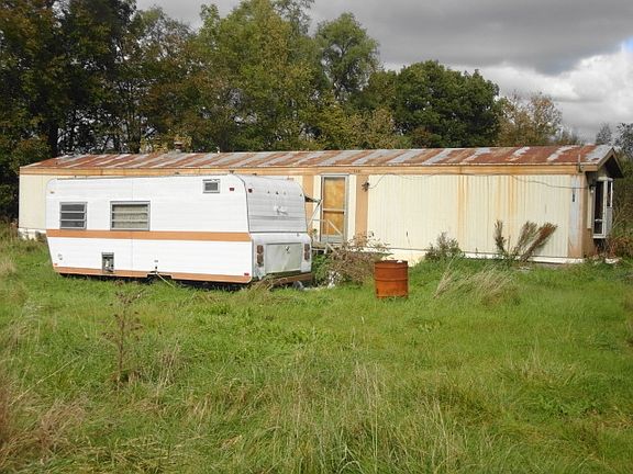 Two properties being sold as one. Home and outbuildings on 6.85 acres and mobile home on 1.4 acres. 8.25 acres total. House is 2 bed, 1 bath with newer well. Trailer is 3 bed, 1 bath, 14x70 Springbrook. It gets electric and water from house. Both properties have been vacant for a long time and are not habitable. Fremont sewer goes across front of property. The 28x48 metal building has cement floor and is solid. The 48x90 covered hay storage pole building on east side of property is rented through May '19. Property being sold "as-is".