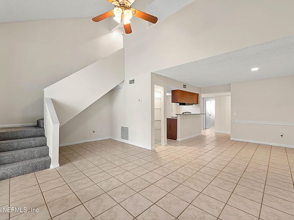 [Seller offering $2500 towards Buyer Closing Costs w/ an accepted list price offer!] All that's left to do is pack your bags and make this charming, move-in ready, water view townhome yours! Designed with comfort and convenience in mind, this townhome offers a functional layout with one full bathroom and bedroom on the ground level and a second full bathroom and bedroom upstairs, offering privacy and flexibility for all lifestyles. ROOF REPLACED 2024! The first floor boasts durable, tile flooring, while the upstairs is wood-look vinyl flooring. The spacious living room with vaulted ceilings is perfect for entertaining, and the kitchen comes fully equipped with a dishwasher, range, and refrigerator. Ceiling fans and blinds are thoughtfully included, saving you from additional costs. The covered, screened in patio is large and perfect for gatherings, with a peaceful view of the pond behind.
