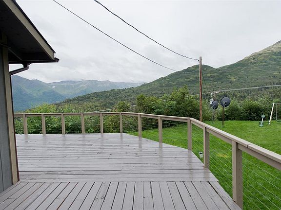 Nestled back on a quiet street and surrounded by mountains, this beautifully remodeled home is the perfect Alaskan retreat. Enjoy the stunning views from the great wrap around deck. Open concept main living area has spacious kitchen with maple cabinets, granite counters, stainless steel appliances, tile back splash & large island. Brazilian cherry & slate tile floors throughout. Upgrade of the energy rating included installation of $12K on-demand boiler system, insulation, new windows, weatherization and such. Home is now rated a 5 star. New carpet in master, upgraded ceiling fan in living room, new dishwasher, new tile entry and upgraded tile backsplash