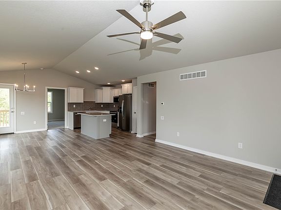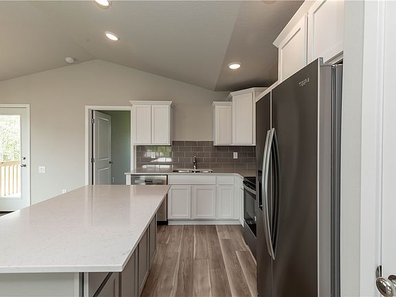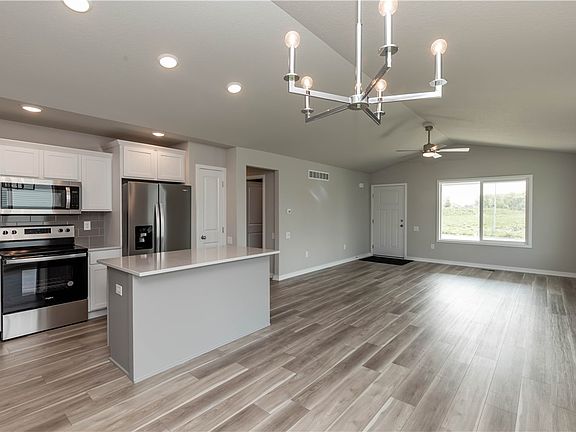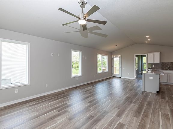 Move-In Ready! NEW, affordable, open ranch plan has: 3 beds, 2 baths, 1,350 SF finished, 3-car garage w/ openers, covered porch, covered deck on a walk out lot with mature trees in the backyard! As you walk in the home you will find vaulted ceilings w/ fan/light in the main living area, Waterproof LVP flooring in kitchen-living-baths-laundry, granite countertops, white cabinets w/ soft close doors, center island, tile backsplash & SS appliances w/ refrigerator. Master suite is tucked away in back of the home by the covered deck & includes fan/light, double vanity, shower, & walk-in closet. There are 2 nice sized kids bedrooms with walk-in closets on the other side of the home with their own bathroom. Off the garage is the big laundry room w/ mud bench & stairs to basement. Basement is unfinished but pre-plumbed for bath & radon. Exterior features include no maintenance vinyl siding, 30 yr. shingles, stone, fully sodded yard, concrete pad out the walk-out door & a tree in front yard. 1yr. builder warranty. 5 Year Tax Abatement included! Photos online are of actual home. Use Preferred lender: Patrick Conway 515-229-1477 and get up to $2,000 in closing costs.