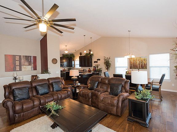 Stunning home on a Cul-de-sac street in Southview Estates! Like new, walkout Basement with 3 car garage, in Southwest Springfield, near River Cut golf course, walking trails, and Wanda Gray/Wilsons elementary. This is a McBride built home, October of 2013, and a superior home with wall to wall custom upgrades showcased throughout. The Interior decor is enhanced by the beautiful hand scraped flooring, 20 foot vaulted ceilings in the main living areas, the master bedroom, and foyer, and together with a bold color palette on accent walls, blend harmoniously lending to a dramatic architectural design that will ''WOW'' you the moment you walk in. This home will be great for entertaining, and additional features contributing to the ambiance; gas log fireplace, stainless GE brand appliances,