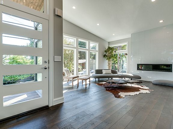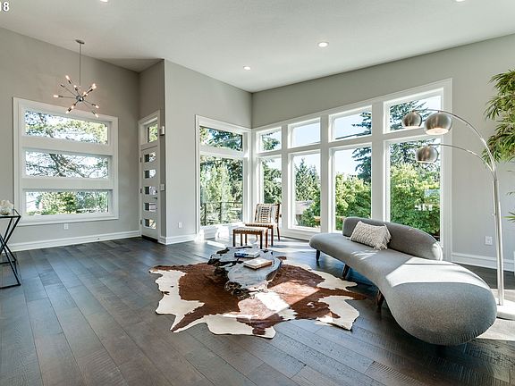 Custom contemporary living in the SW Hills! Amazing Mtn, river, city views & natural light from floor to ceiling windows. Hi end details include floating wooden stairs, ultra sleek kitchen, wet bar, two master suites - one on the main level & under cabinet motion lighting in the bathrooms. Folding patio door makes outdoor entertaining a breeze. Upper master suite features H/W floors & heated master bath tile floors. [Home Energy Score = 4. HES Report at https://api.greenbuildingregistry.com/report/hes/OR10109316-20180726]