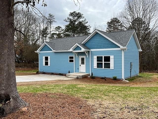 Cute as a button BRAND NEW construction on almost 1 ACRE! The interior design is top notch with LVP throughout the entire home, quartz countertops, designer lighting and tiled master shower! The interior features 3 bedrooms and 2 bathrooms, a HUGE kitchen with plenty of storage and massive island. The kitchen opens to the vaulted family room with fireplace and eat-in area. Split bedroom plan with private master retreat with double vanities and separate tub and tiled shower. The secondary bedrooms share a hall bathroom and the laundry room is adjacent. This home offers privacy, plenty of parking and a wooded setting.