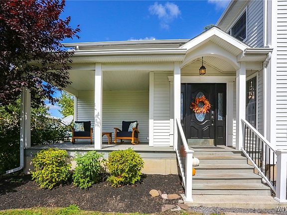 Step into a piece of Clarence history with this lovingly renovated farmhouse, originally built in the 1800's as the Cox Estate. Once part of a 99-acre farm, this unique property now offers just under 2 acres of beautifully landscaped grounds in the Clarence School District. Lovingly converted and upgraded in 2010, the home blends historic character with modern systems. All mechanicals were replaced, including a state-of-the-art boiler, on-demand hot water, and all-copper plumbing. All windows have been replaced for energy efficiency and comfort. Roof replaced 3 years ago. Original chestnut floors in the living and dining rooms - pristine condition. Original pine floors upstairs throughout all bedrooms. Original colonial fireplace with gas stove insert anchors the family room. Gorgeous Custom Candlelight kitchen cabinetry, granite counters, island, recessed lighting, and abundant storage -perfect place for family to gather. Breakfast room filled with natural light from walls of windows. 1st-floor laundry with craft room or office space and sliding glass door to the deck – versatile space for hobbies or organization. Primary suite with light filled sitting room, remodeled ensuite featuring a Jacuzzi tub and glass shower enclosure. Expansive deck with railings, pergolas, and BBQ area – perfect for entertaining. In-ground saltwater pool with attached spa (2010) with lifetime-guaranteed mechanics, recently upgraded electronic controls, smartphone-operated. Pole barn (built in 2002) with electricity and gas, featuring a finished upstairs game room and versatile space for hobbies, workshop, or storage. Large gravel area ideal for bonfires or play area. Landscaped with perennials and mature trees. Pool area is fully fenced. Plenty of space for future expansion if desired. Spacious grounds partially wooded with endless possibilities for recreation or gardening. OPEN HOUSE SATURDAY 9/27 FROM 11-1. Seller reserves the right to set offer deadline.