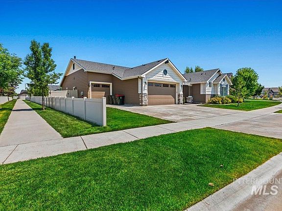 This Beauty is nestled on a .29 acre lot in The Oaks, one of Meridian's most coveted communities! A true gem surrounded by lush walking paths, a refreshing community pool, and an exciting playground for summer fun! Home sits directly across from open green space & features 4 bedrooms, 2.5 bathrooms with dedicated office space. Light, bright & beautiful throughout with beautiful flooring and new carpet throughout. Kitchen is a dream & includes quartz countertops stainless steel appliances & extended cabinetry throughout. Open concept living! Perfect for entertaining. Kitchen opens to great room with fabulous fireplace. Home was thoughtfully designed to have a true split level feel. Master on one side & plenty of spare bedrooms on the other! (Kid wing!) Master features his and hers vanity as well as walk in closet. Extra large lot is fully fenced with vinyl fencing to include gates on both sides.