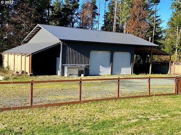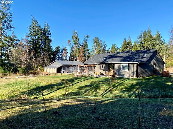 Custom Contemporary on 1.5 acres in East Bandon. New oak hardwoods throughout main living and in two bedrooms, new soft carpet in two bedrooms. Neutral paint in main living area and hallways. Custom California Closets for walk-in pantry and hall closets. Stainless gas range and dual oven, granite counters with island. South facing cement covered porch. Big fenced back yard with garden areas. Detached shop over 2000 sq. ft. for RVs, boats, ATVs, storage, and work bench.