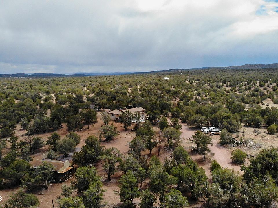 Secluded custom-built 2-bedroom, 3-bath home on 6.89 acres, tucked away at the end of the road for ultimate privacy. This one-of-a-kind property offers rustic charm, modern comforts, and panoramic views of the Aubrey Mountains from nearly every window. Step through double entry doors into the flagstone foyer and a dramatic sunken living room featuring vaulted beamed ceilings and a stunning floor-to-ceiling flagstone fireplace. The spacious eat-in country kitchen includes a center island and propane refrigerator, perfect for gatherings and everyday living.The large primary suite highlights a decorative tin-plate ceiling and fireplace blower for cozy nights, while the guest bedroom enjoys its own private entrance to the pool and deck--ideal for relaxation or entertaining. Outdoors, discover the property's unique 'Owl's Nest' viewing area nestled among the trees, where stargazing, wildlife watching, and sweeping desert vistas create unforgettable moments.Equestrian enthusiasts will appreciate the horse shed, paddock, and turnout area, plus direct access to bordering State Trust Land for endless riding and exploring. Designed for sustainable living, the home is powered by solar with a Kohler twin-cylinder full-house generator, and features a blend of electric, 12-volt, and propane wall lighting. Every detail enhances the balance between self-sufficiency and comfort.With its mid-century character, this home also offers exciting potential as an Airbnb or vacation rental. Sold fully furnished and move-in ready, it includes three parcels (301-43-142, 143, 144) and the freedom of no HOA. Whether you're seeking a private homestead, an off-grid retreat, or a unique investment, this property delivers the space, views, and lifestyle that are increasingly hard to find.Experience the charm of Northern Arizona living--private, peaceful, and truly unforgettable.