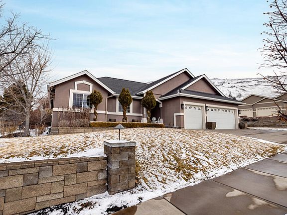 This beautiful like new one owner home has been lovingly maintained with high end finishes, wood & tile floors, newer gas furnace, also has A/C & central vac. Open floor plan with vaulted ceilings, kitchen with granite counters, center island, all appliances included, & a large pantry. Very roomy main bedroom with double doors and an office/sitting room. Main bath has double sinks, jetted tub, shower and walk in closet. 2 guest bedrooms, and bath with tub/shower. On corner lot, .26 ac. 3 car garage, sprinklers, covered patio, beautifully landscaped with a water feature and block retaining walls. Even an awesome mountain view and great hiking!