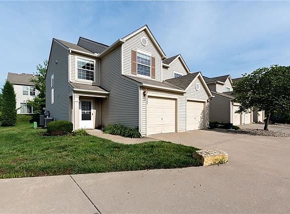 1300+ sq ft, 2 story townhouse in the well established Kinsley Forest Subdivision. Excellently located within 15 minutes of downtown Kansas City and close proximity to I-29 and 169. Open floor plan on main level which is perfect for entertaining with kitchen overlooking the living room. Upstairs features the 2 spacious bedrooms and the opportunity to add an office on the large landing. Master bedroom features a double closets and private master bath. Washer, dryer (on bedroom level) and fridge all stay with the property! GOOGLE FIBER! Why rent when you can buy HOA fee covers water, trash, lawn, sewer, exterior maintenance & structure insurance.