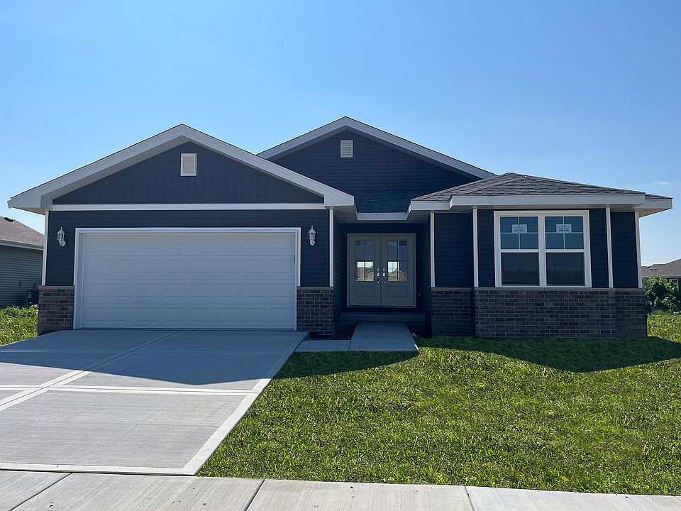 This open floor plan is popular for creating a sense of flow and connectivity between different living spaces. It functions well for both family time and entertaining guests. A vaulted ceiling adds a sense of grandeur and openness to the space, allowing for more natural light to filter in. The kitchen features white and pewter shaker style cabinets, which are known for their timeless and versatile design. The white perimeter with a contrasting pewter island brings the style of the exterior finishes into the kitchen. The durable quartz countertops are complemented by the glass tile backsplash, adding a touch of elegance and color to the space. Wood laminate flooring in common areas is a practical choice as it's easy to clean and maintain, and adds warmth and character to this home. The pewter shaker style cabinets in both bathrooms reflect the kitchen's island, creating a cohesive design throughout the home. Cultured marble tops are a durable and stylish choice for bathroom countertops, while 12x24 ceramic tiles are a contemporary and functional flooring option. Living in this quiet neighborhood is a sought-after feature, as it can provide a peaceful and safe environment for you and your family. Please call to schedule your tour today! This home includes fully sodded yard and landscaping.Agent related.