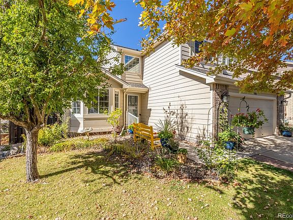Prepare to be amazed! Check out this fantastic 4 bed, 3.5 bath, 2 office residence now for sale in Trail Ridge! A beautiful facade w/brick accents, a lush front yard w/mature shade trees and a 2 car garage w/an extended driveway are just the beginning. Inside you will find a sizeable living area w/vaulted ceilings, two offices, one on the main floor & one upstairs, elegant laminate flooring, and a lovely bay window. The formal dining room w/graceful archways is perfect for hosting a dinner party! Continue into the cozy family room, featuring a granite faced gas fireplace with blower to keep you warm during the coming winter months. The gorgeous eat-in kitchen is comprised of soft close wood cabinetry, beautiful granite counters, mosaic tile backsplash, stainless steel appliances, a prep island, pendant lighting, and a peninsula complete w/a breakfast bar. Upstairs you'll find the grand primary suite, showcasing a walk-in closet and a lavish ensuite w/dual vessel sinks. The large walkout basement with a large pantry, bonus room, 4th bedroom and 4th bath is ideal for entertainment or as guest quarters. The possibilities are endless! Lastly, the backyard includes a large covered deck, very large brick patio, separate patio with hot tub, partially xeriscaped yard and beautiful perennial flower beds. There is also a good sized storage shed! What are you waiting for? Act now!
