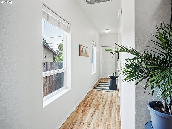 Welcome to this bright Brentwood charmer, where classic design meets modern comfort. Step inside to the open-concept kitchen, dining, and living area, an ideal floor plan for easy living & entertaining. The kitchen is newly updated with quartz countertops, a deep stainless steel sink, a sleek faucet, and a brand-new Bosch dishwasher, making cleanup effortless & a large walk-in pantry, perfect for storage. The high ceilings & large windows create an airy, bright atmosphere, with lovely views of the backyard adorned with mature trumpet vines & evergreen clematis. Upstairs, you'll find brand-new cozy carpet and vaulted ceilings. The large primary bedroom overlooks the backyard filled with lush, mature trees, has two closets & an ensuite bathroom complete with a skylight. Beyond the landing are two more spacious bedrooms, each featuring bright windows, closets, and enough space for a queen bed or a home office. The second bathroom also includes a tub-shower combo and another skylight. Outside, the low-maintenance yard is surrounded by mature landscaping. The patio, with built-in benches, is perfect for relaxing outdoors. The sellers are leaving behind their handcrafted greenhouse, perfect for gardening enthusiasts, and a new fence and robust gate completes the yard. The home also features solar panels and air conditioning, ensuring comfort while keeping energy costs down. Nestled in a quiet, friendly neighborhood, this home is just three blocks from Lane Middle School and Brentwood Park, making recreation and education easily accessible. With a bike score of 96, commuting and exploring the area is effortless. Nearby, you'll find grocery stores, coffee shops, and even a knitting shop.The vibrant attractions of Woodstock are just a short distance away, offering the perfect mix of quiet living and local conveniences. You’ll love calling this place home [Home Energy Score = 8. HES Report at https://rpt.greenbuildingregistry.com/hes/OR10232676]