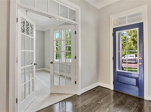 PERFECT OPPORTUNITY to own a CUSTOM HOME in desirable FOXCREEK! This gorgeous home backs to private woods on an ideal homesite. Built by Homesmith, the Keswick offers a timeless custom elevation with a front porch & 2nd floor balcony welcoming you inside. Open the charming front door & notice the beautiful hardwood floors, finishes, & moldings giving a glimpse of the quality & style throughout. Behind a set of French doors, find a private study for working at home or unwinding. The Great Room, with warm wood-beamed ceiling, fireplace w/custom mantel, & built-in shelves, opens up to the kitchen & sunny dining nook. The gourmet kitchen provides ample cabinet space, large pantry, & premium appliances. Upstairs, relax in the master suite w/ huge walk-in closet plus master bath complete w/ soaking tub, custom tile, & large tile shower. The additional 3 bedrooms down the hall all include walk-in closets & access to full baths. A walk-up unfinished/roughed-in 3rd floor holds many possibilities w/plenty of room for storage or future square footage. Don't miss the 2.5 car garage &the 12x17 screened in porch with beautiful views. READY NOW, move into new construction this summer!